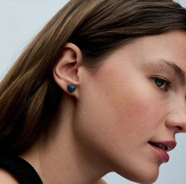 Сережки “Серце” з зеленим опалом